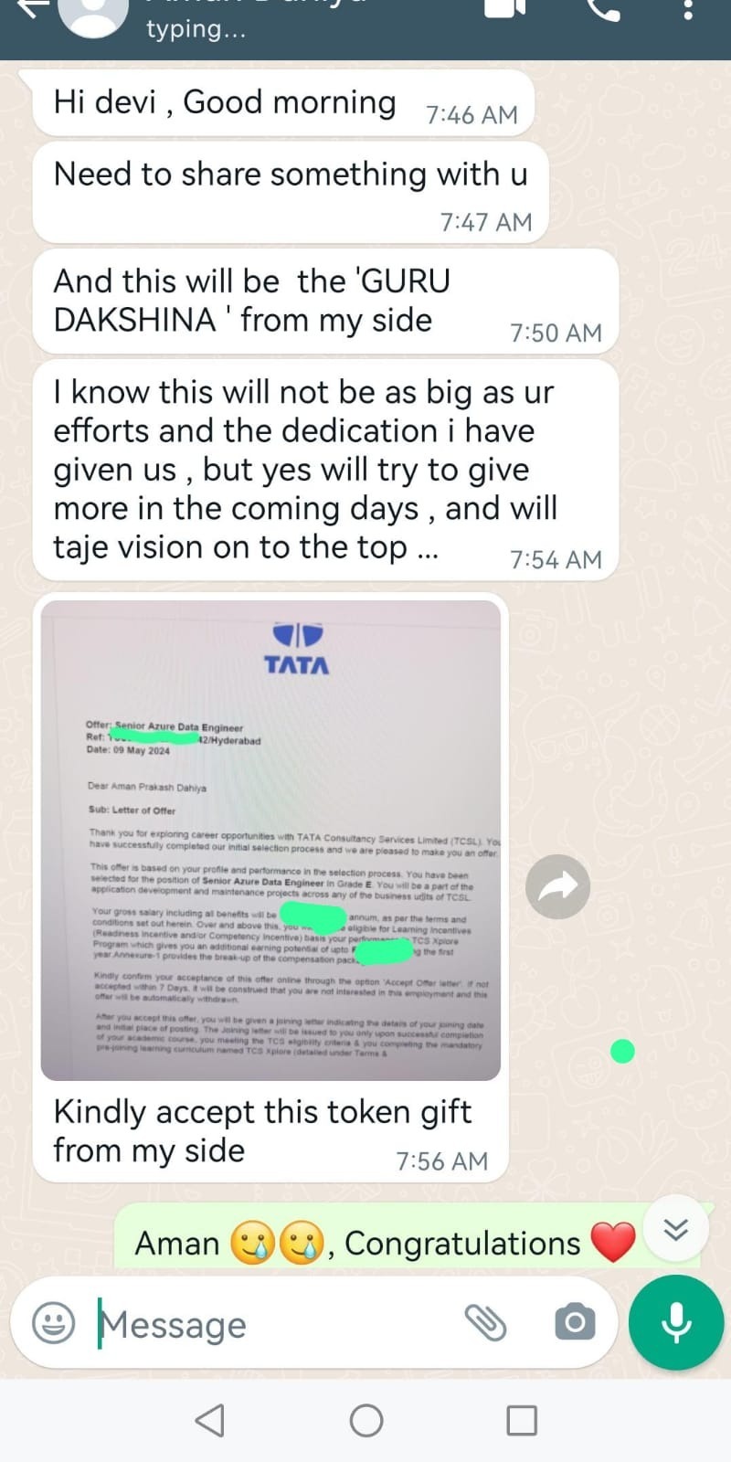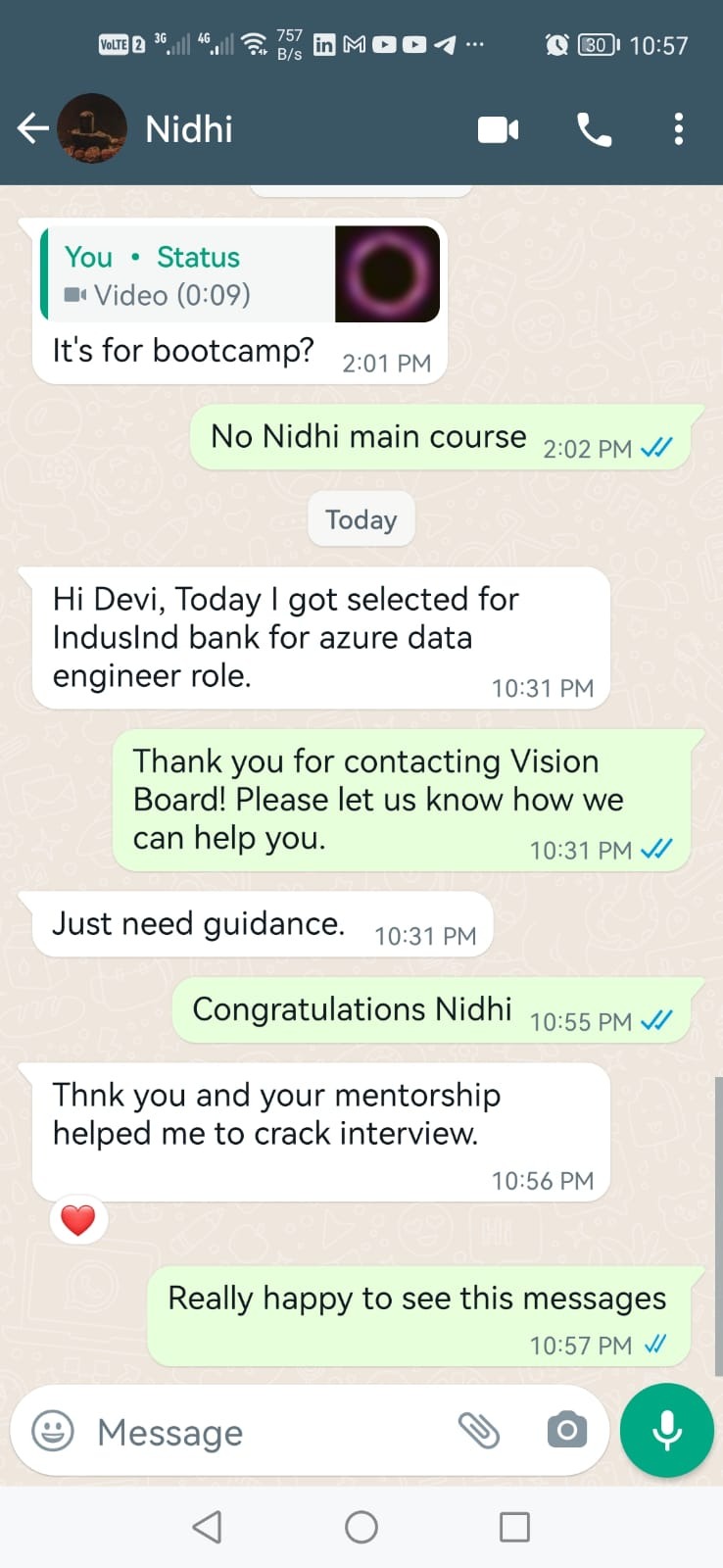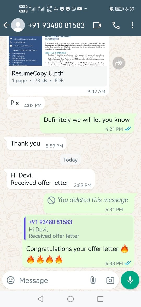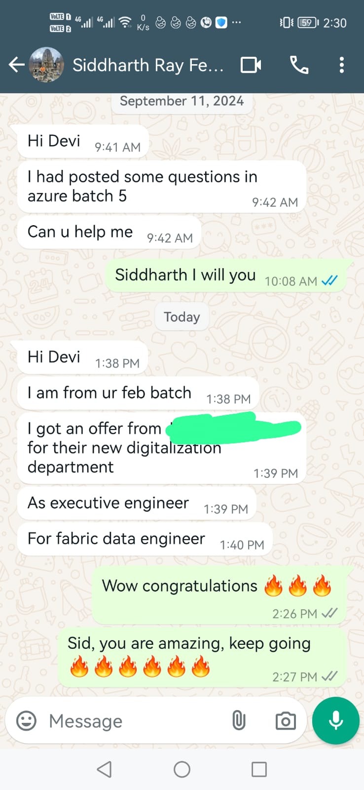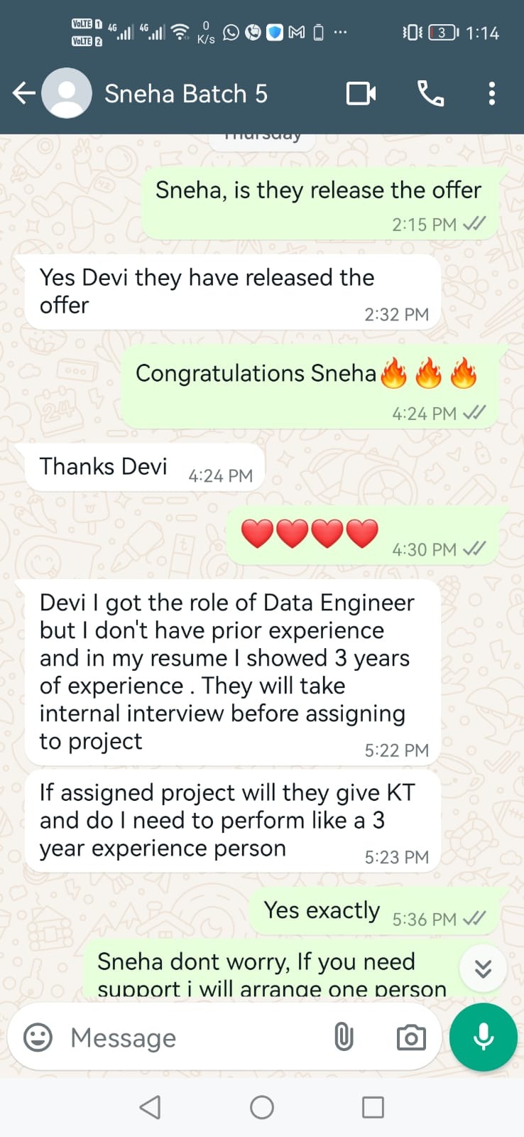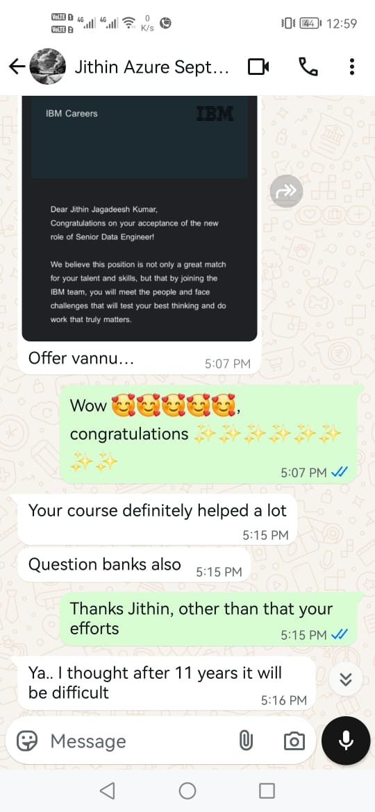 This course has been invaluable for me as a fresher entering the field. It provided me with a solid foundation and gave me a clear understanding of the concepts essential in the realm of data engineering