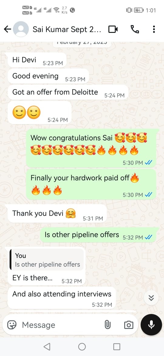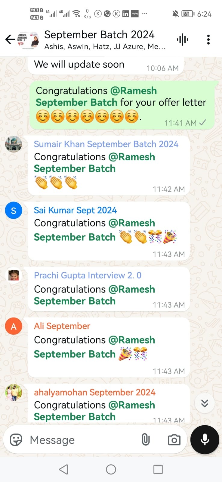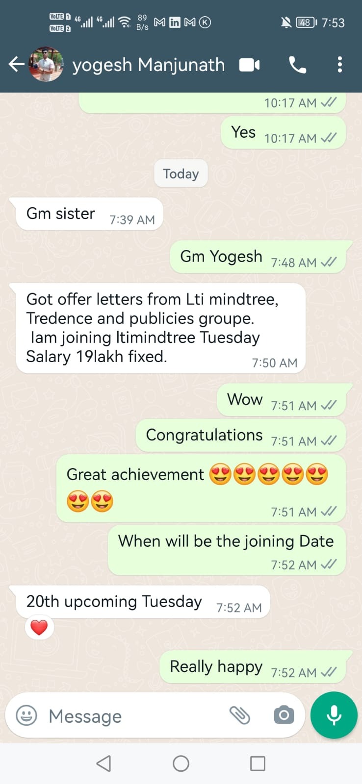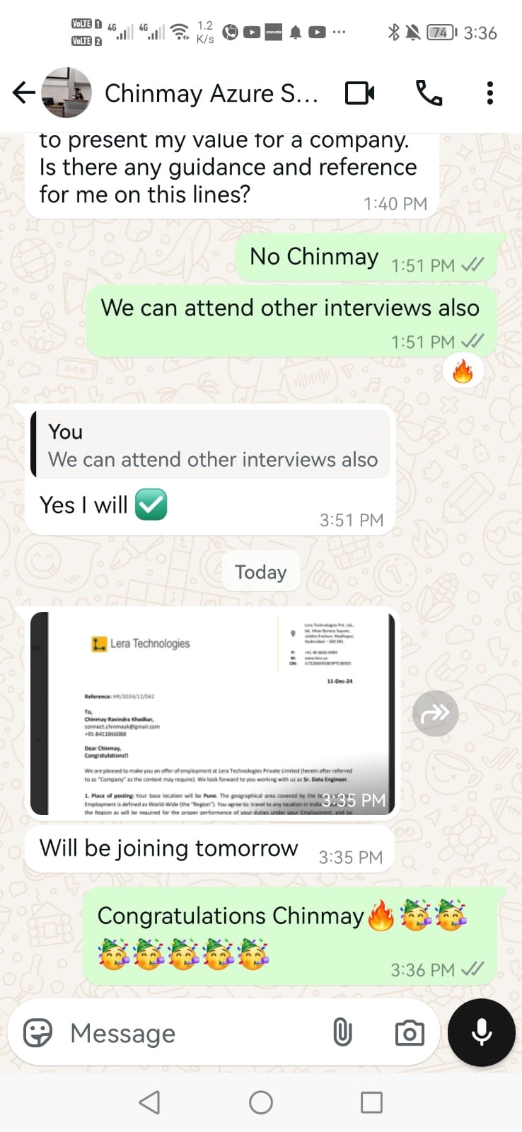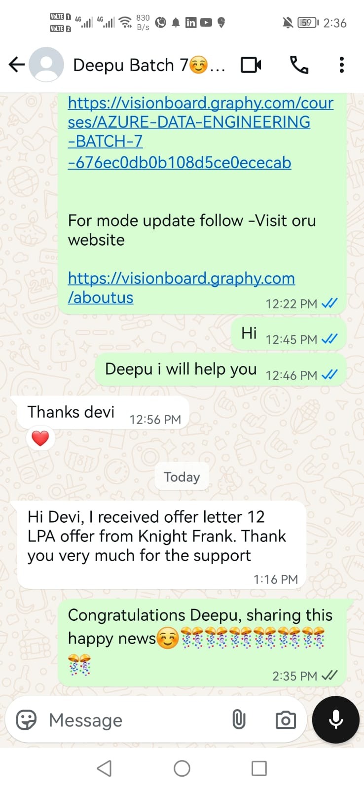 This course has been invaluable for me as a fresher entering the field. It provided me with a solid foundation and gave me a clear understanding of the concepts essential in the realm of data engineering