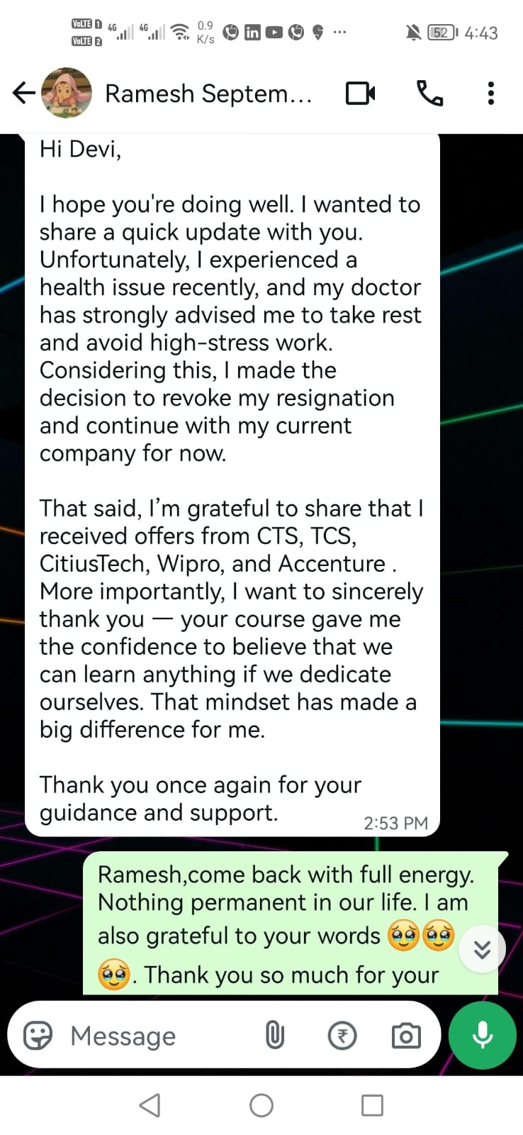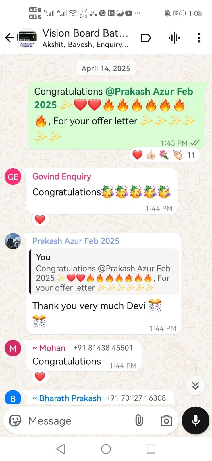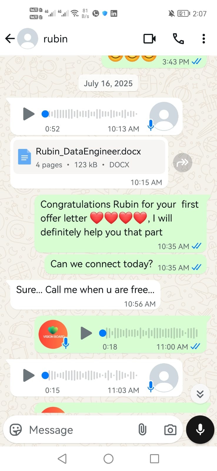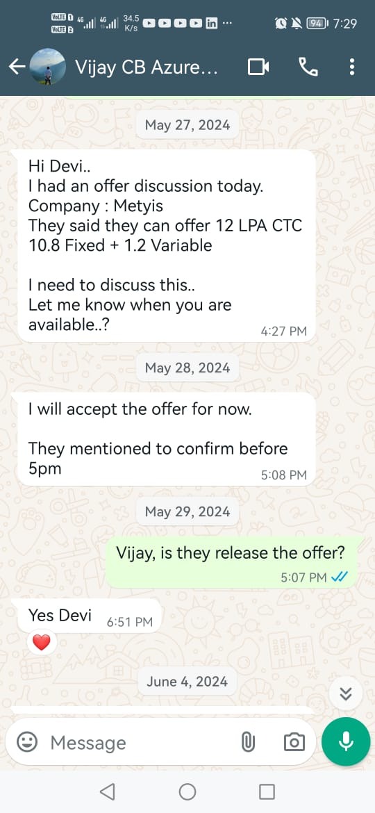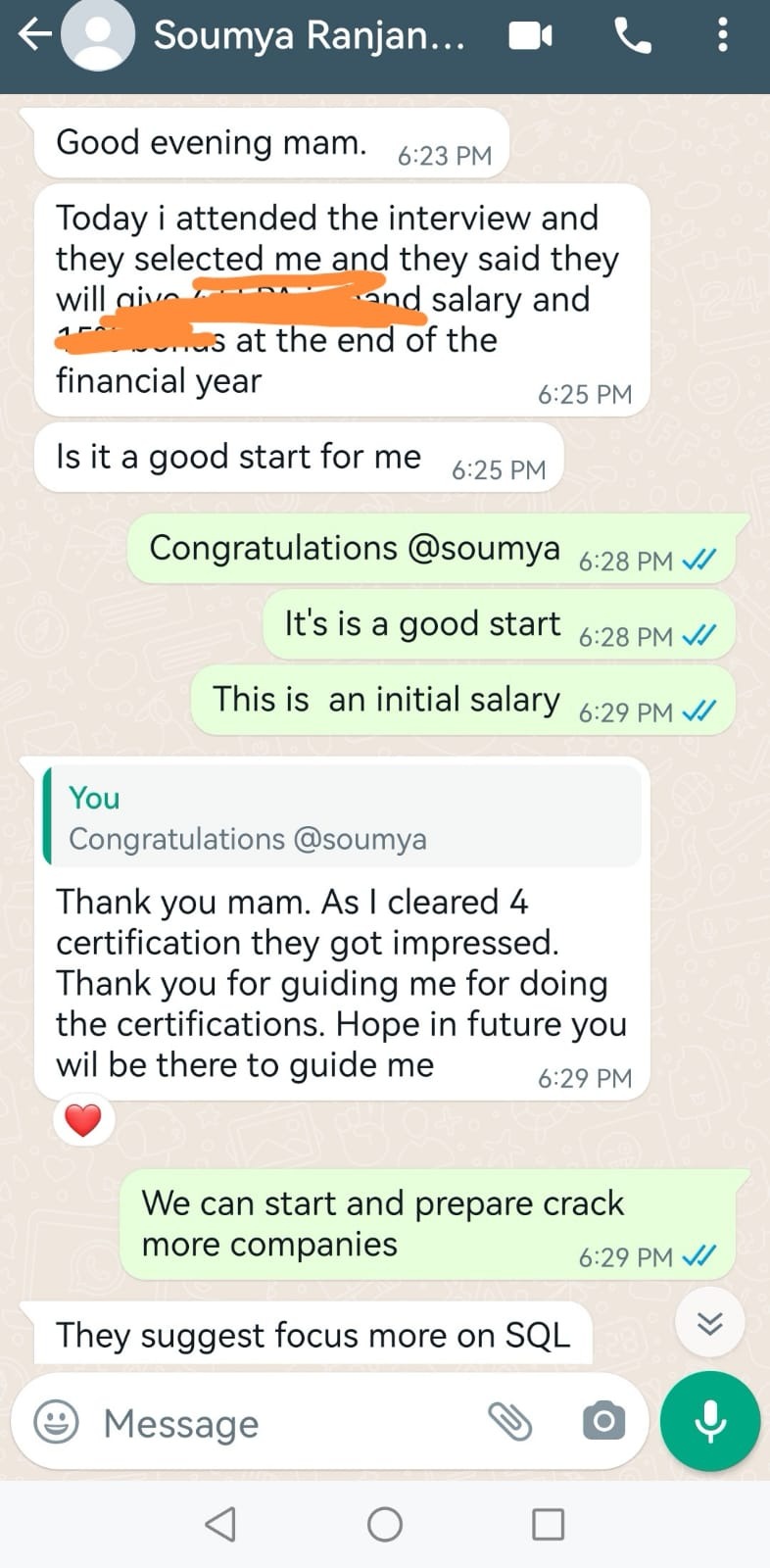 This course has been invaluable for me as a fresher entering the field. It provided me with a solid foundation and gave me a clear understanding of the concepts essential in the realm of data engineering